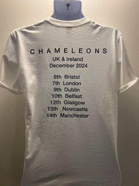 Featuring Chameleons artwork by Reg from the album “Tomorrow Remember Yesterday” printed on the front and 2024 tour dates on the back